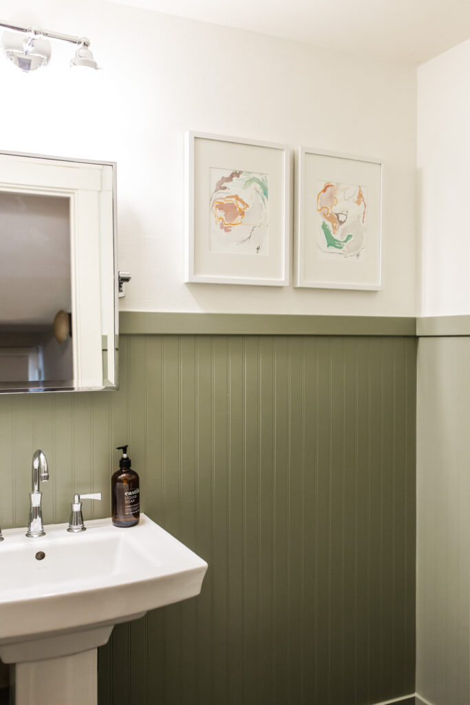 We already had beadboard in other areas of our home, so extending it into the powder room helped the space feel connected and intentional, as if it was always there.